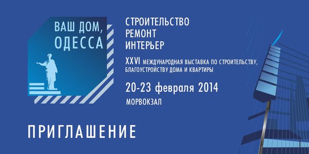 Уважаемые Дамы и Господа!Приглашаем Вас посетить наш стенд на крупнейшей выставке по строительству и благоустройству – «Ваш Дом Одесса», которая пройдет с 20 по 23 февраля в выставочном комплексе Одесского Морвокзала !